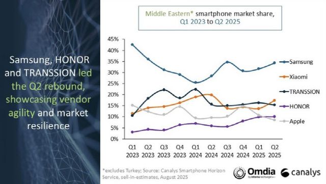 한편, 캐널라이스가 지난 14일 발표한 중동지역의 스마트폰 점유율에서 삼성전자는 올해 2분기 34%를 기록해 전년 동기(28%) 대비 6% 포인트 증가한 것으로 조사됐다.