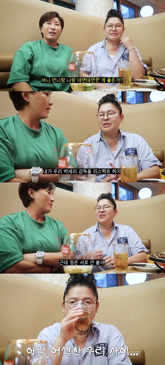 이에 박세리는 "언니랑 나랑 데면데면한 게 좋은가? 왜 조회수가 이렇게 많이 나오지?"라며 농담을 건넸다. 이영자는 "내가 우리 박세리 감독을 리스펙트 한다. 근데 정은 서로 안 붙는다"라고 말해 웃음을 자아냈다.