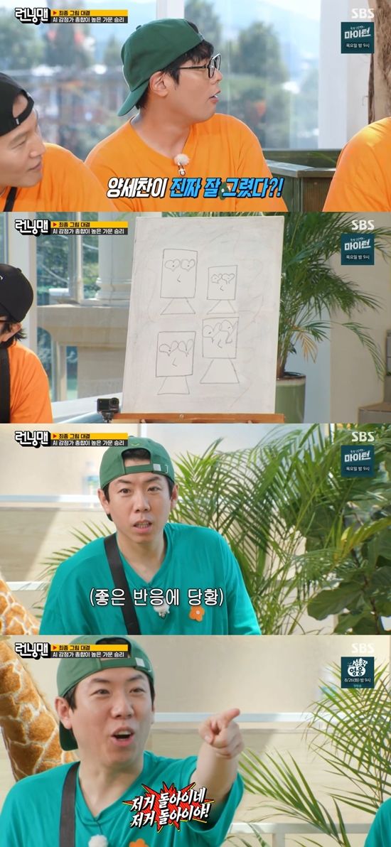 처음으로 공개된 그림은 양세찬의 그림이었다. 양세찬의 그림을 확인한 지석진은 "오 저거 잘 그렸다. 그림 괜찮다"라며 감탄했다.