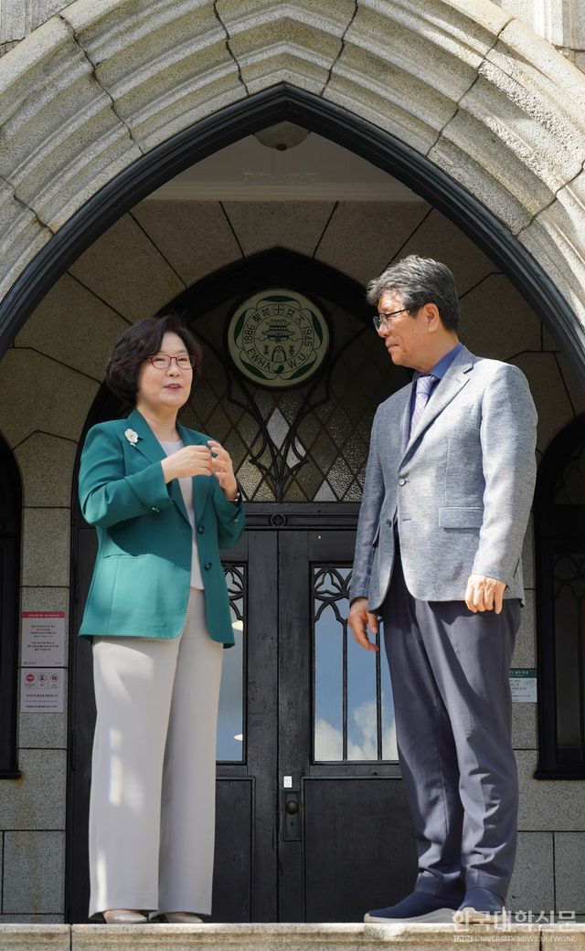 [한국대학신문 윤채빈 기자] 이화여대가 개교 139년 만에 처음으로 과학기술계 출신 총장을 맞았다. 이향숙 이화여대 총장은 “과거 인문·사회 중심의 대학 구조에서 벗어나, 모든 전공에서 AI를 이해하고 활용할 수 있는 융합교육을 강화할 것”이라며 “종합대학으로서의 특성을 살려 이공계 경쟁력까지 견인하는 게 목표”라고 말했다. 이화는 현재 전공별 AI 교과목 확대와 융합연구 인프라 구축, 글로벌 인재 양성 등을 주요 축으로 새로운 미래 100년을 향한 중장기 발전 전략을 추진 중이다.
