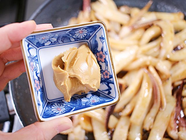 재료는 오징어, 버터, 땅콩버터, 가쓰오부시,