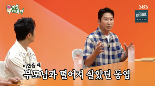 신동엽은 “저도 4살 때 할아버지 사업이 잘 안 되면서 가정이 무너졌다. 아버지는 학교 선생님이었지만 빚을 갚아야 했고, 엄마는 일하러 나가야 했다. 그래서 부모님과 떨어져 살았었는데 일주일에 한 번씩 볼 때마다 ‘나 좀 데려가달라’라며 울고불고 난리였다”고 말했다.