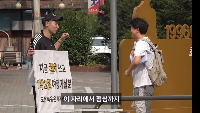 이후 허슬러는 ‘모르는 직장인과 즉흥 랜덤여행’, ‘모르는 사람과 제주도 여행’, ‘모르는 사람과 즉흥 해외여행’ 등 즉흥 여행을 콘셉트로 한 영상만 총 7편을 올렸다. 최고 조회수는 100만 회에 육박했고, 가장 낮은 영상도 15만 회를 훌쩍 넘겼다. 구독자들은 처음 만난 사람들과 잘 어울리는 친화력, 모든 여행경비를 본인이 부담하는 부분을 허슬러 여행 콘텐츠만의 매력 포인트로 꼽았다. 이를 단적으로 보여준 것이 지난 6월 공개된 ‘모르는 직장인과 즉흥 랜덤여행’ 편이다. 허슬러는 오전 9시, 출근 인파로 붐비는 서울 성수역에서 “지금 월차쓰고 1박 2일 여행 가실분 (모든 비용은 제가 냅니다)”이라는 파격적인 제안을 내걸었다.