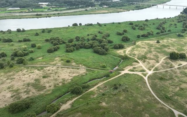 20년 전만 해도 이곳은 넓은 모래톱과 강 한가운데 있는 섬이 자랑거리였다. 하지만 4대강 사업 당시 강에서 퍼낸 흙으로 일대를 덮는 개발이 진행됐다. 이후 자전거 길이 닦였고 최근엔 파크골프장까지 들어섰다.