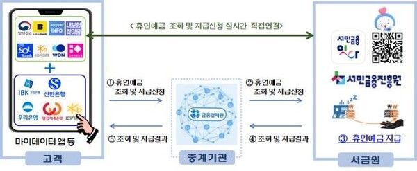 서민금융진흥원은 금융당국, 13개 마이데이터 사업자와 협업해 18일부터 '휴면예금 찾아줌' 서비스를 마이데이터사업자 앱에서도 제공한다고 밝혔다.