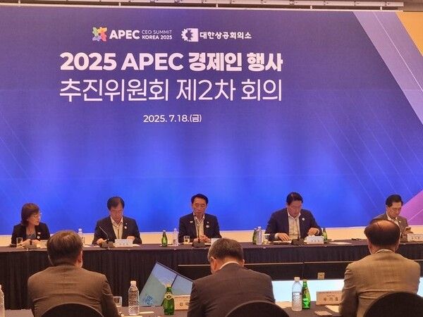 회의에 참석한 여한구 통상교섭본부장은 "최근 한-미 관세협상 타결로 수출 불확실성이 어느 정도 해소됐지만 다자무역체제 약화 및 자국우선주의 확산 등의 리스크가 지속되고 있는 상황"이라며 "올해 APEC 경제인 행사는 우리 기업들의 숨통을 틔우고 도약할 수 있는 디딤돌이 되도록 준비해야 한다"고 당부했다.