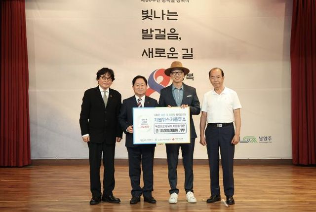 [파이낸셜경제=김영란 기자] 남양주시는 15일 제80주년 8.15 광복절 경축식에서 ㈜기원위스키증류소가 저소득 독립유공자 유족 지원을 위해 기부금 1천만 원을 남양주시복지재단에 전달했다고 밝혔다.