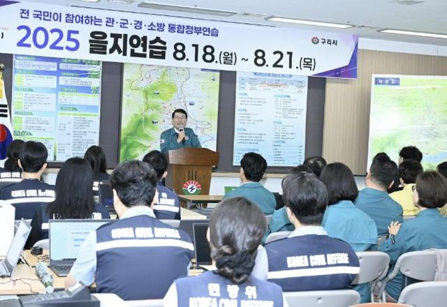 [파이낸셜경제=김영란 기자] 구리시는 8월 18일 오전, 구리시청 1층 종합상황실에서 간부 공무원과 군경, 소방 등 유관기관 관계자 등이 참석한 가운데 2025년 을지연습의 시작을 알리는 최초 상황보고회를 실시했다.