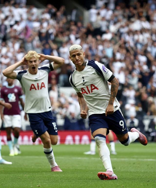 토트넘은 18일(한국시간) 소셜미디어(SNS)에 히샤를리송이 지난 16일 열린 2025~26시즌 잉글랜드 프리미어리그(EPL) 번리와 개막전에서 팀의 두 번째 골을 넣은 직후 사진을 게시했다.