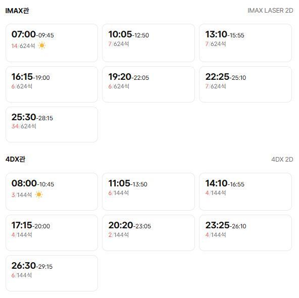 8월 22일 CGV 연남 '극장판 귀멸의 칼날: 무한성편' 예매창 / CGV 홈페이지