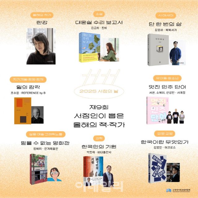 사단법인 한국서점조합연합회(한국서련)는 ‘제9회 서점인이 뽑은 책 올해의 책·작가’를 18일 발표했다. ‘서점인이 뽑은 올해의 책·작가’는 한국서런이 서점의 날(매년 11월 11일)을 앞두고 전국 서점인들의 추천을 바탕으로 선정하는 시상식이다.