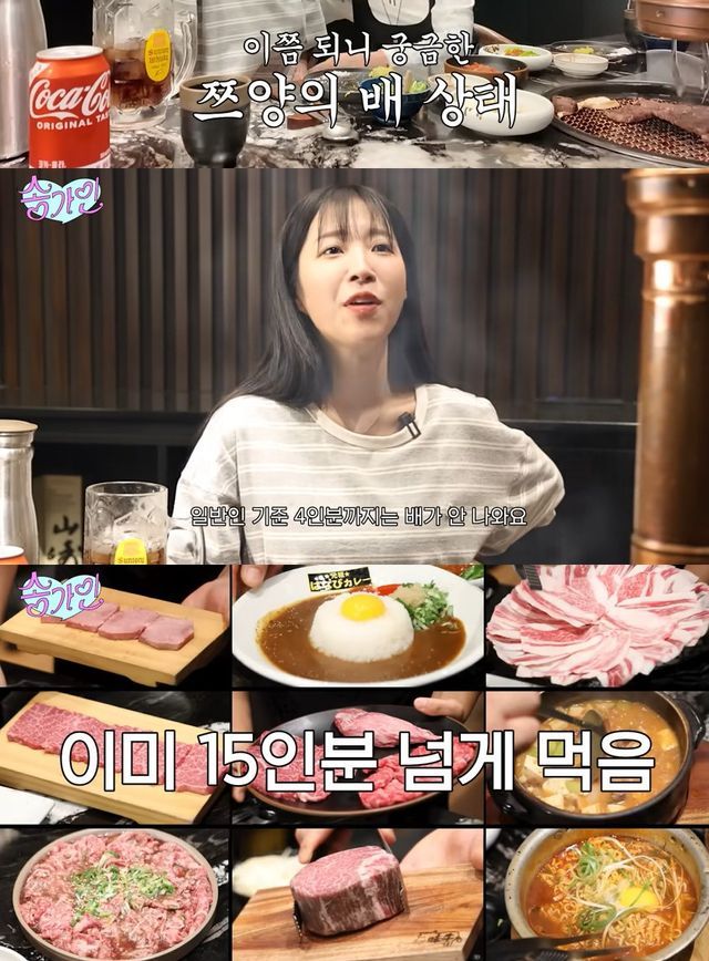 빨리 익는 차돌박이까지 곁들여 "오늘 너무 맛있다"는 쯔양을 따라 먹던 송가인은 "잠깐만요. 바지를 좀 풀어야 할 것 같다"면서 한계에 임박한 모습을 보였다.