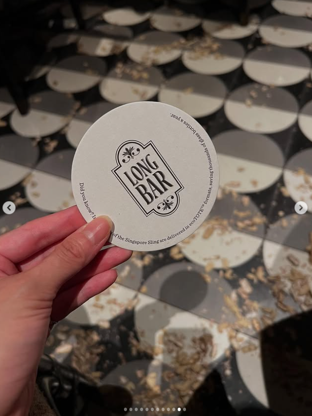 마지막 코스는 싱가포르 래플스 호텔의 명소 롱 바(Long Bar). 이곳은 세계적인 칵테일 ‘싱가포르 슬링(Singapore Sling)’의 발상지로 알려져 있다.