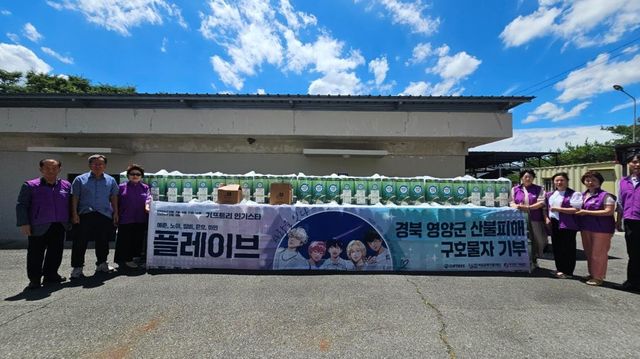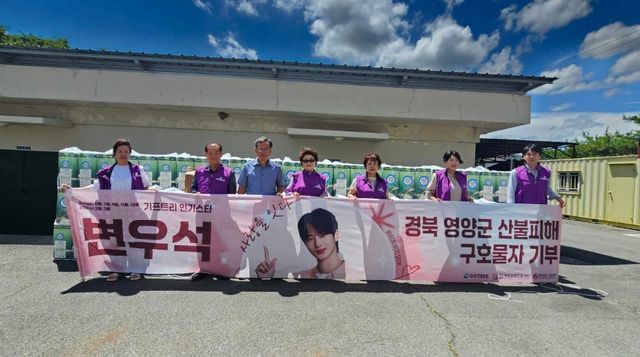 지난달 팬투표 서비스 기프트리는 인기스타 1위 배우 변우석과 그룹 플레이브(PLAVE)의 이름으로 경북 영양군 산불 피해 지역 주민들을 위한 구호물자를 전달했다.