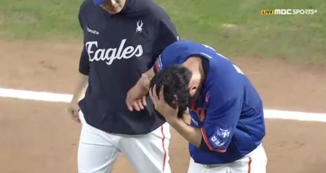 공에 맞은 문동주는 마운드에 쓰러져 고통을 호소했다. 트레이닝 코치와 양상문 투수코치는 물론 그라운드에 있던 야수 전원이 문동주의 상태를 체크했고, 최정원도 걱정스러운 표정으로 지켜봤다.