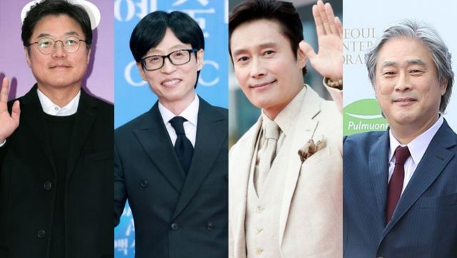 왼쪽에서부터 나영석, 유재석, 이병헌, 박찬욱 / 뉴스1