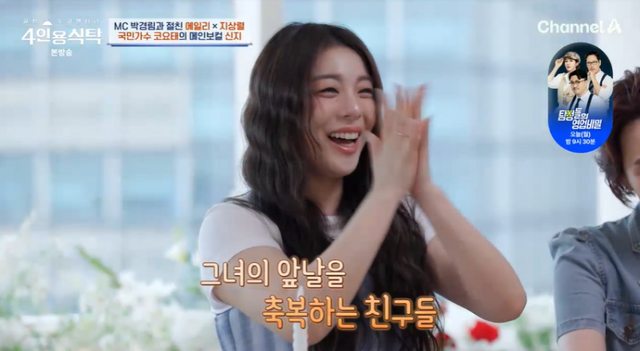 에일리는 18일 채널A 예능프로그램 ‘절친 토큐멘터리-4인용식탁’에서 신지가 등장하자 “결혼을 축하한다”며 “울컥한다”고 눈물을 글썽거렸다.
