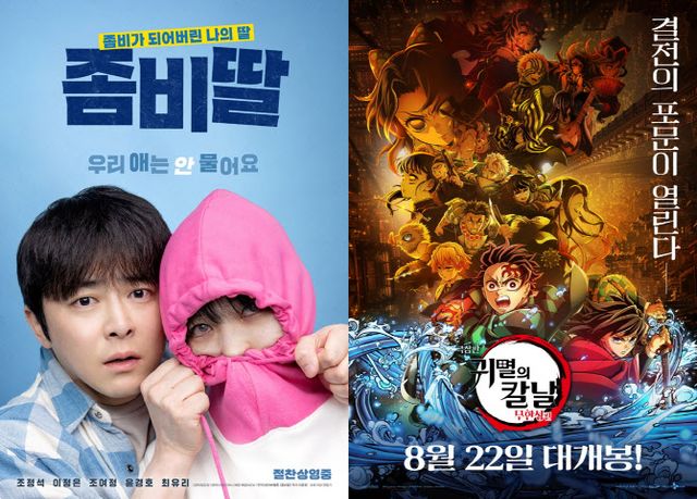 이 가운데 ‘귀멸의 칼날’은 19일 오전 8시 30분 기준 예매 관객 수 56만 1939명을 기록하며 예매율 1위에 올랐다. 하루 만에 약 10만 명이 늘어난 수치로, 개봉과 동시에 박스오피스 정상 등극 가능성이 높게 점쳐진다. 20일 연속 1위를 이어온 ‘좀비딸’이 ‘귀멸의 칼날’의 공세를 막아낼 수 있을지 극장가의 시선이 집중되고 있다.