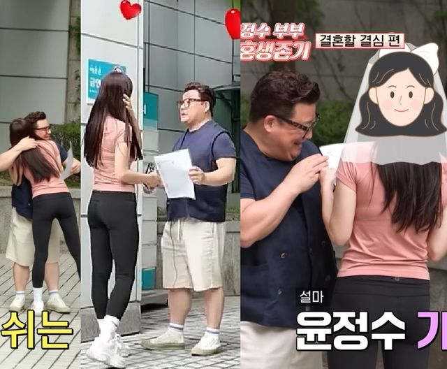 혼인신고를 마치고 혼인신고서를 공개한 윤정수는 제작진의 박수를 받았다. 그는 "이거 너무 금방 끝난다. 53년을 혼자 살아왔는데 서류 쓰니 5분 30초도 안 걸리더라"며 허무함을 고백했다.