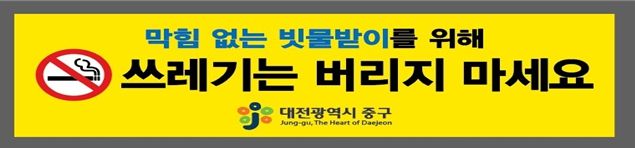 [파이낸셜경제=김영란 기자] 대전 중구는 쾌적한 도시환경 조성과 빗물받이 악취 저감을 위해 대흥동, 오류동, 은행동 먹자골목 등 관내 주요 지역 빗물받이 주변 250개소에‘막힘없는 빗물받이 만들기’안내표지를 이달 말까지 부착한다고 밝혔다.