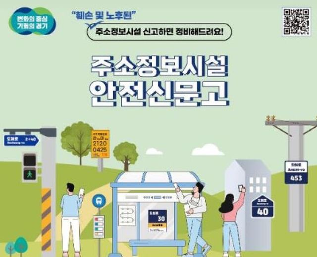 경기부동산포털내 ‘주소정보시설 안전신문고’에 접속해 훼손·노후화 또는 없어진 시설물의 현장 사진을 등록하면 된다. 처리 결과 등은 제보자에게 문자메시지로 안내한다.
