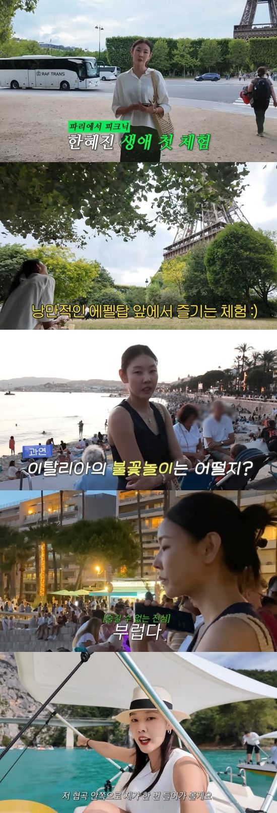 영상 속 한혜진은 가장 먼저 파리를 방문했다. 한혜진은 모델 활동 시절을 떠올리면서 "한 번도 피크닉을 해 본 적은 없었다"라고 덧붙였다.