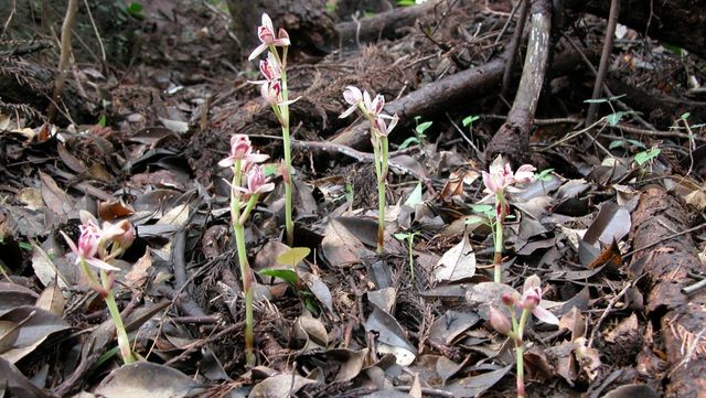 대흥란은 보춘화속에 속하는 다년생 부생식물로 잎이 없어 엽록소를 만들지 못하고 담자균류에 의존해 살아간다. 매년 7월에서 8월 사이 총상꽃차례에 2~6개의 연한 홍색 꽃을 피우며 열매가 형성되면 꽃줄기와 열매가 녹색으로 변했다가 성숙하면 까맣게 마른다.