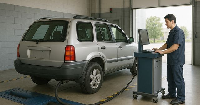 생성형 AI로 제작한 배출가스 검사 받는 SUV.