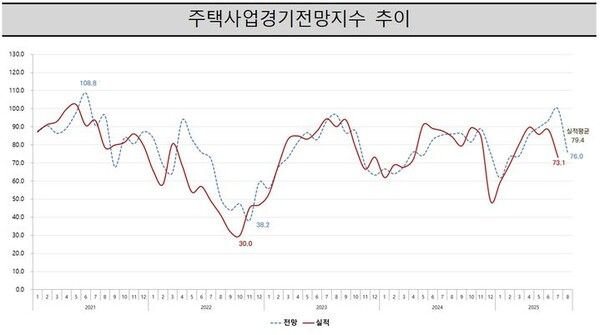 뉴시스 보도에 따르면, 19일 주택산업연구원이 주택사업자를 대상으로 설문조사한 결과, 8월 주택사업 경기 전망지수는 전월 대비 24.0포인트(p) 하락한 76.0으로 나타났다.