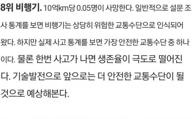 이동수단 안전 순위.