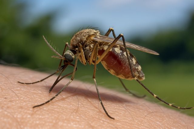 말라리아 매개 모기(얼룩날개모기류)의 모습. 기사 내용을 바탕으로 AI가 생성한 자료사진. (실제와 다를 수 있음을 알립니다.)