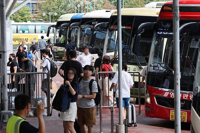 민족 대명절 추석 연휴에 귀경객들이 버스에서 내려 발걸음을 옮기고 있다. 자료 사진 / 뉴스1