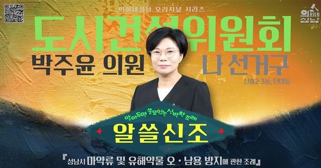 이번에 소개하는 조례는 박주윤 의원 등 13명이 공동 발의한 '성남시 마약류 및 유해약물 오·남용 방지에 관한 조례'이다. 이 조례는 '마약류 관리에 관한 법률' 제2조의 2제1항, '청소년 보호법'제5조 제1항 및 같은 조 제2항에 따라 마약류 및 유해약물의 오용 또는 남용으로부터 시민을 보호하기 위하여 마약류 및 유해약물의 오·남용 예방과 안전에 관한 사항을 규정함을 목적으로 한다. 이번 조례 제정으로 마약류 및 유해약물 오·남용에 대한 예방 체계가 강화되고, 시민의 건강과 사회적 안전망이 한층 견고해질 것으로 기대된다. 이 조례는 2023년 8월 7일부터 시행 중이다.