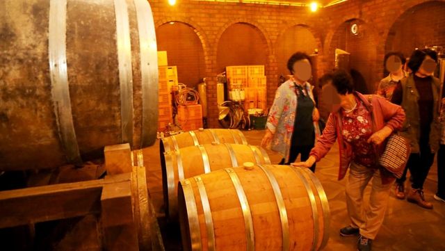 영천와인터널에서 오크통을 살펴 보고 있는 관광객의 모습. / 뉴스1