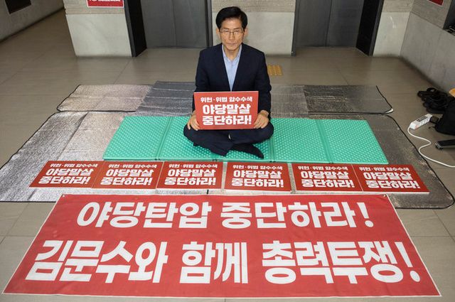 [프라임경제] 특검의 압수수색에 강력한 반발을 표하는 국민의힘이 당사로 집결했다. 김문수 당대표 후보가 농성 시위를 펼치는가 하면 지도부는 집무실을 당사로 옮기기도 했다.