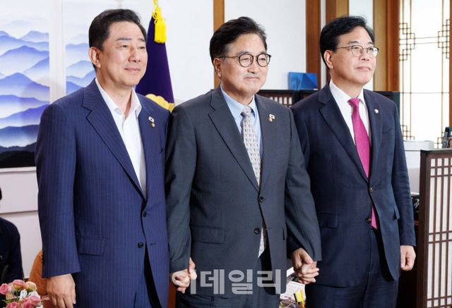 김병기 더불어민주당 원내대표와 송언석 국민의힘 원내대표는 19일 우원식 국회의장 중재로 만나 이번 주 본회의 일정 조정에 합의했다. 국회는 애초 21~24일 본회의를 진행할 예정이었으나 국민의힘 요청으로 국민의힘 전당대회가 열리는 22일엔 본회의를 중단키로 했다. 대신 25일에 본회의를 하루 더 연다.