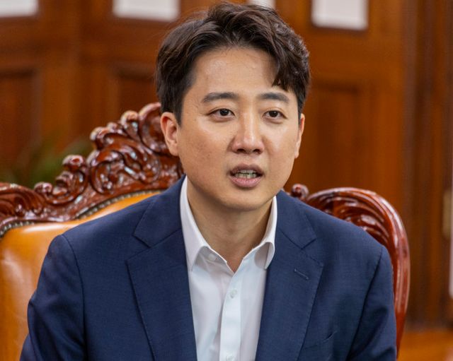 이준석 개혁신당 대표가 19일 취임 인사차 우원식 국회의장을 예방해 의장 집무실에서 환담하고 있다. © 연합뉴스
