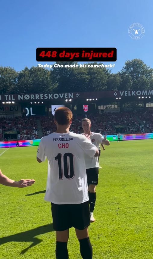 지난 17일(한국 시각) 2025-26 덴마크 수페르리가 5라운드 바일레 볼드클럽과의 원정 경기에서 조규성은 후반 추가시간 2분 아담 북사 대신 교체 투입됐다. 무려 448일 만에 그라운드를 밟은 그는 녹슬지 않은 경기 감각을 뽐냈다. 동료 다리오 오소리오의 쐐기골 기점 역할로 팀의 2-0 승리를 견인했다. 조규성의 활약과 함께 미트윌란은 2-0 승리를 거뒀다.