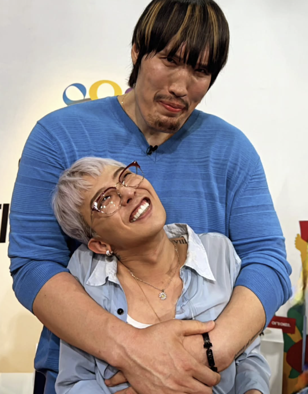 두 사람의 투샷은 마치 현실과 만화를 오가는 느낌이다. 218cm의 거구 최홍만 품에 안긴 지드래곤은 말 그대로 ‘쏙’ 들어가며 체격 차이를 실감케 했다. 키뿐만 아니라 손 크기, 목 굵기, 어깨 너비까지 모든 게 다르다. 지드래곤의 장난기 어린 미소와 최홍만의 다정한 표정이 묘한 조화를 이뤄 보는 이들마저 미소 짓게 만든다.