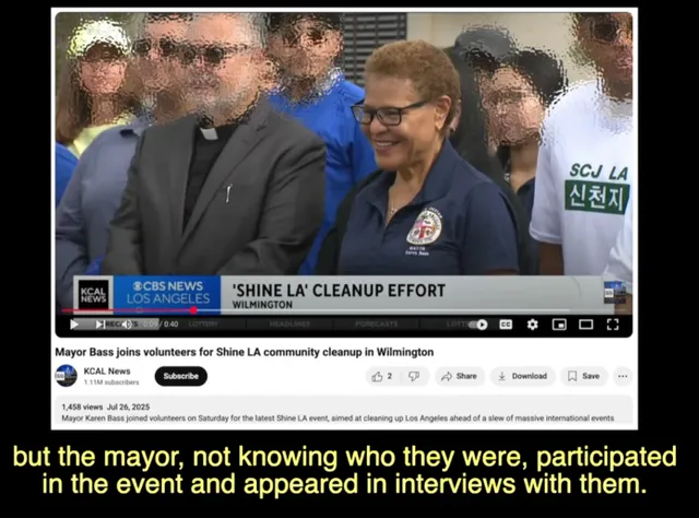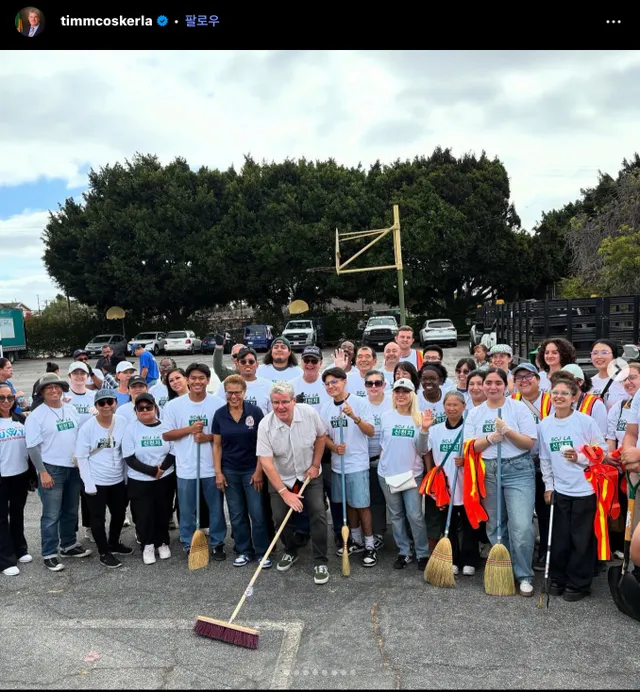 신천지들이 봉사활동하러 단체로와서 같이 사진 찍음