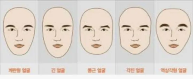 역삼각형 얼굴, 각진네모형(공룡상) , 계란형 얼굴 , 둥근 얼굴, 긴얼굴