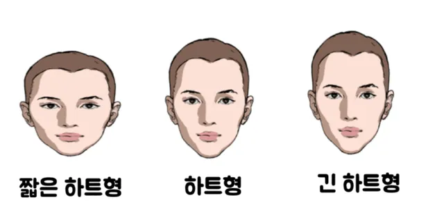 주로 여들의 얼굴 형태인 짧은 하트형, 하트형, 긴하트형 얼굴 3개 다들어감