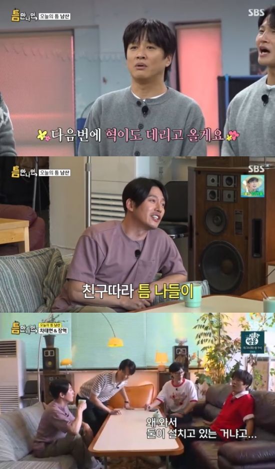 차태현과 장혁은 '틈만나면' MC 유재석, 유연석보다 훨씬 먼저 도착해 이야기를 나누고 있었다.