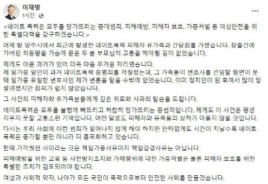 올해 5월 당시 이재명 민주당 대선 후보는 다시 교제폭력 범죄 처벌 강화 등 여성 정책을 약속했다. 그리고 지난 13일 이재명 정부는 5년간 추진할 국정과제를 발표하며 여성가족부를 성평등가족부로 확대 개편하고 교제폭력에 대한 대응도 강화하겠다고 밝혔다.