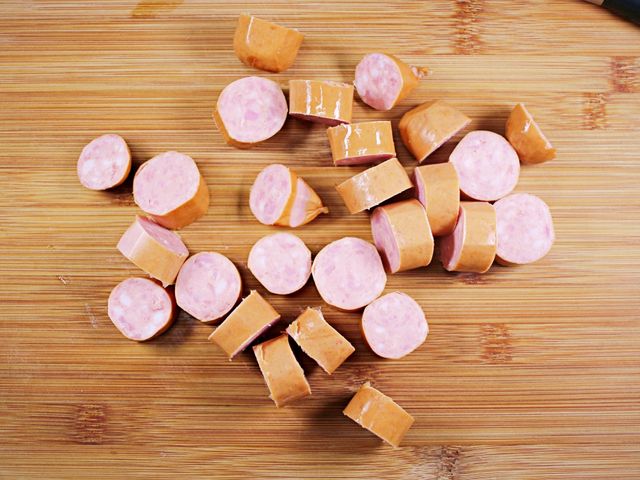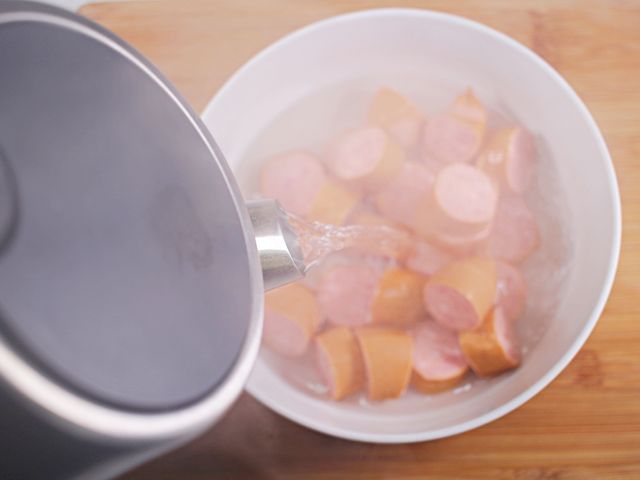 소시지의 물기를 완전히 제거해야 기름이 튀지 않아요.