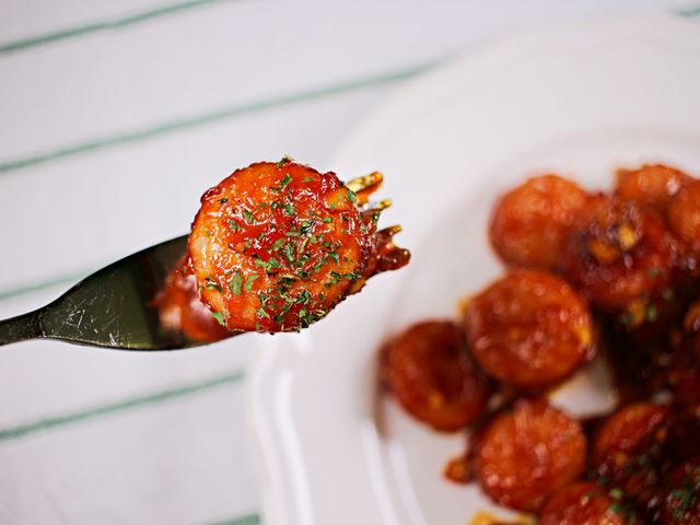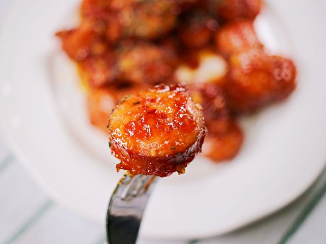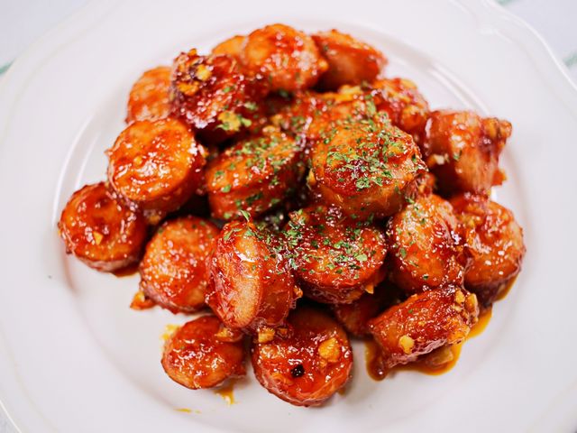 양념이 걸쭉해져 소시지에 잘 배면 불을 끄고,