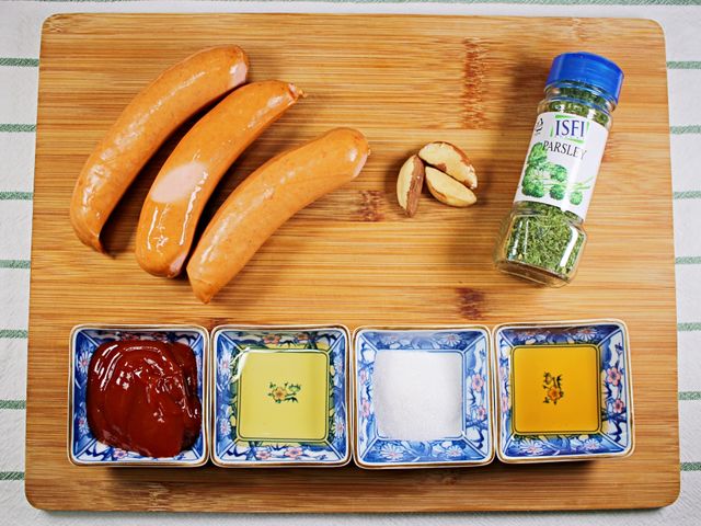 재료는 소시지, 견과류, 케첩, 올리고당,