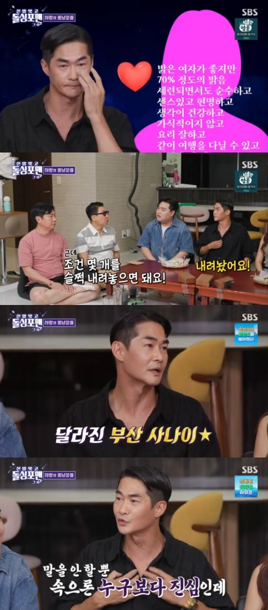 이어 "그래서 지금은 많이 바뀌었다. 예전에는 연애할 때 사과를 해본 적이 없는데, 지금은 한다. 지금 이것도 계속 고치고 있다"고 덧붙였다. 하지만 배정남의 까다로운 이상형 조건을 듣자 고우리는 "AI랑 대화하세요"라고 돌직구를 날렸다.