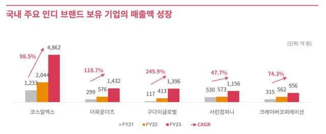 국내 주요 인디 화장품 브랜드 매출액 성장률 (출처: pwc)