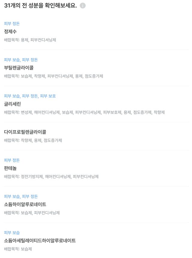 성분 중심 화장품 소비의 큰 배경은 ‘성분’을 알기 쉬워진 환경도 한몫했습니다. ‘화해’와 같은 화장품 플랫폼에서는 각 화장품마다 어떤 성분이 들어있는지, 위험한 성분은 없는지 시각적으로 잘 보여줍니다. 지그재그는 아예 ‘성분’ 탭을 만들어 제품의 추천 성분과 전 성분의 배합 목적을 상세히 보여주고 있죠. 또한 온라인 커뮤니티 등에서도 뷰티 제품을 추천할 때 ‘성분’ 분석으로 이야기하고요.